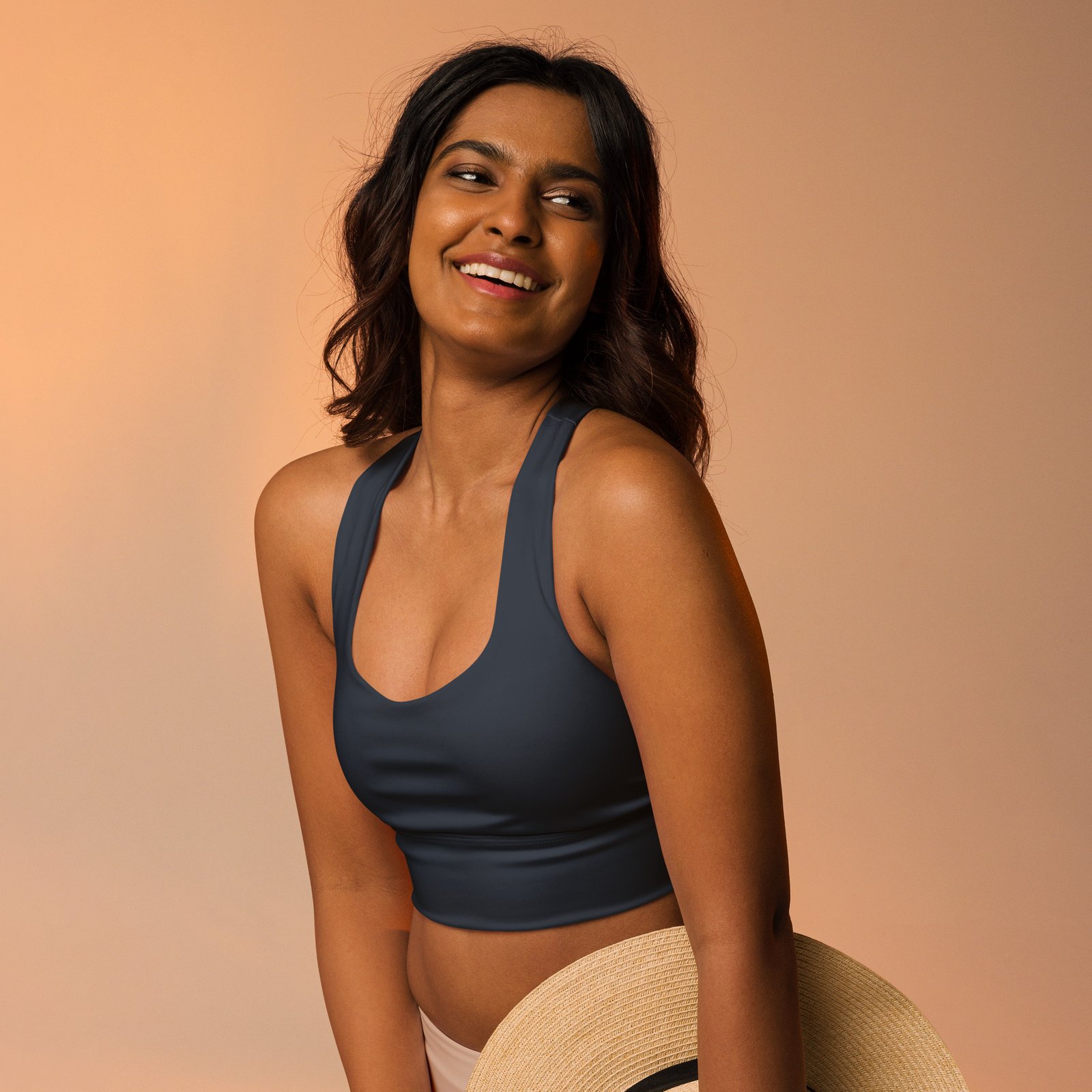 Ses détails pratiques — coussinets amovibles, doublure respirante, coupe allongée — en font une pièce versatile que tu peux porter aussi bien pour ton yoga matinal que sous une veste en journée ensoleillée 🌞.